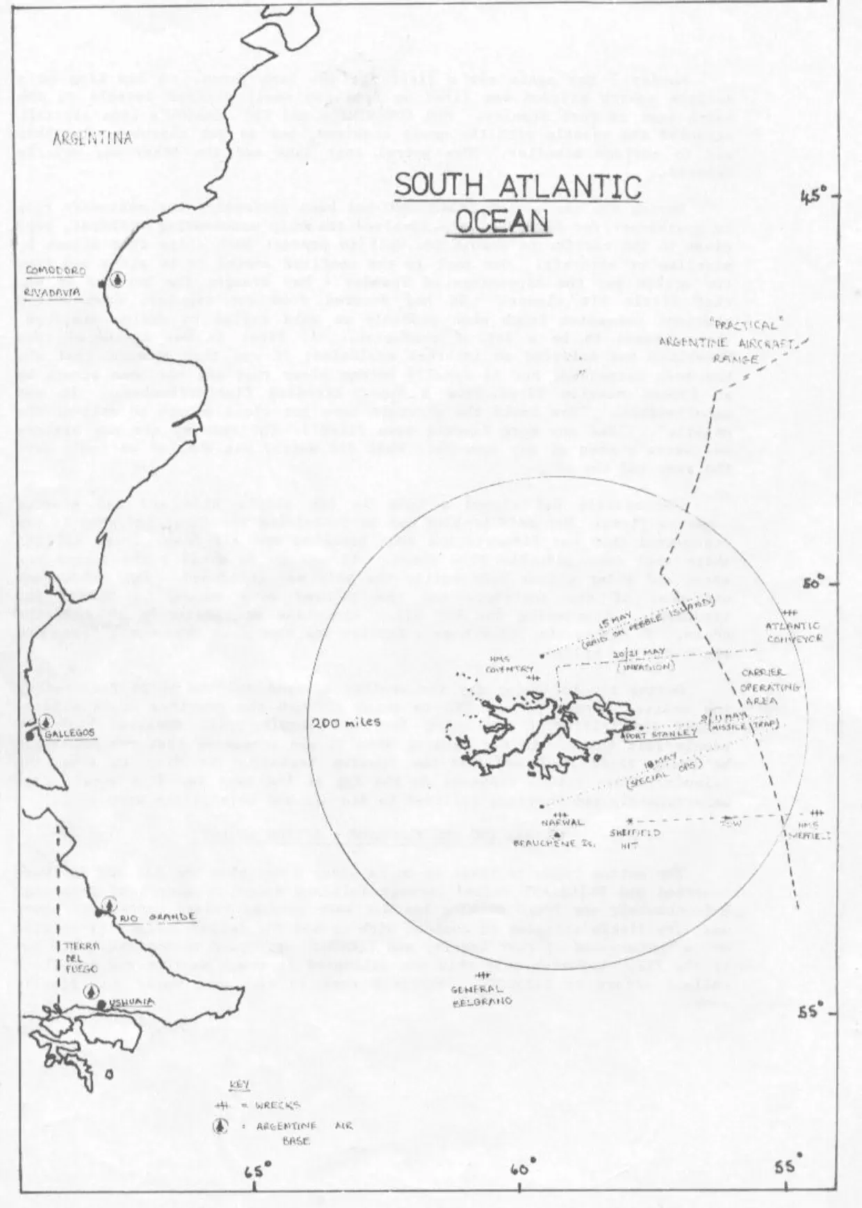 The first encounter with the Argentine Air Force took place soon after lunch on Friday 21st May, when the Flight Commander