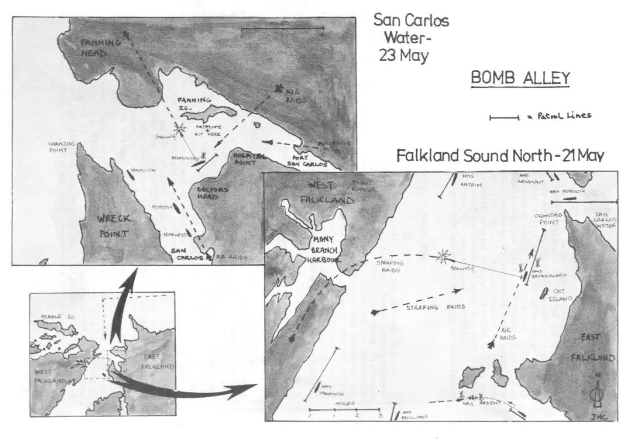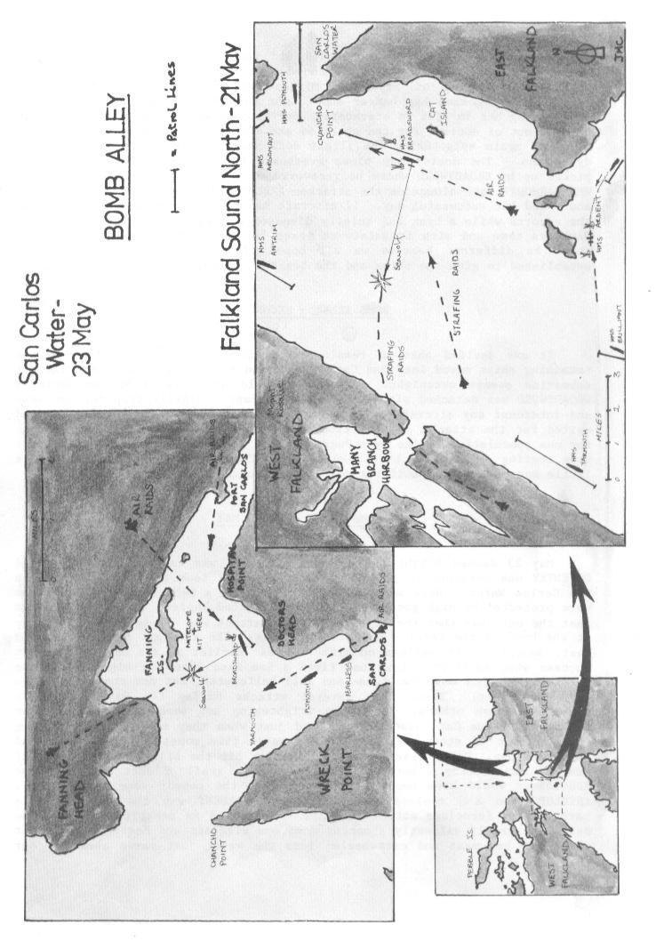 On Sunday morning the 23rd, we found ourselves back in Bomb Alley, ready to take out any marauding Argentine aircraft. Once