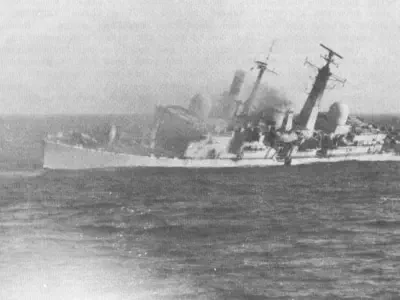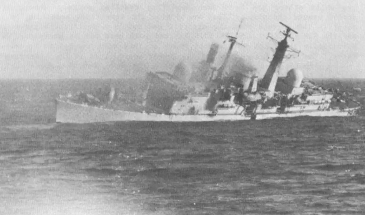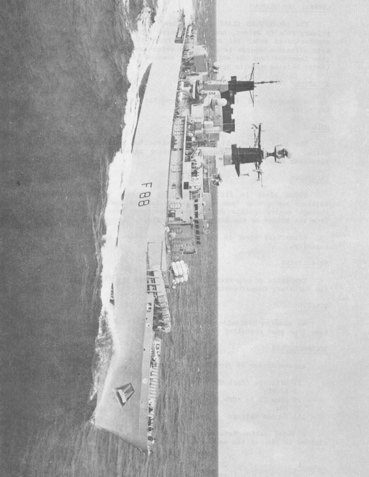 deck, taking with it the nose of XZ 729; 1825, COVENTRY has been hit and was listing to port.
