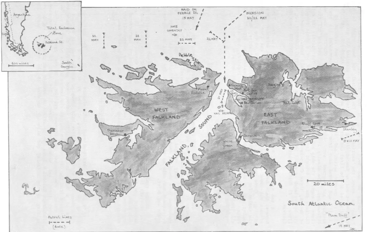 The Saturday was much quieter. HMS COVENTRY and ourselves were deployed to the north of Pebble Island, to act as a Missile