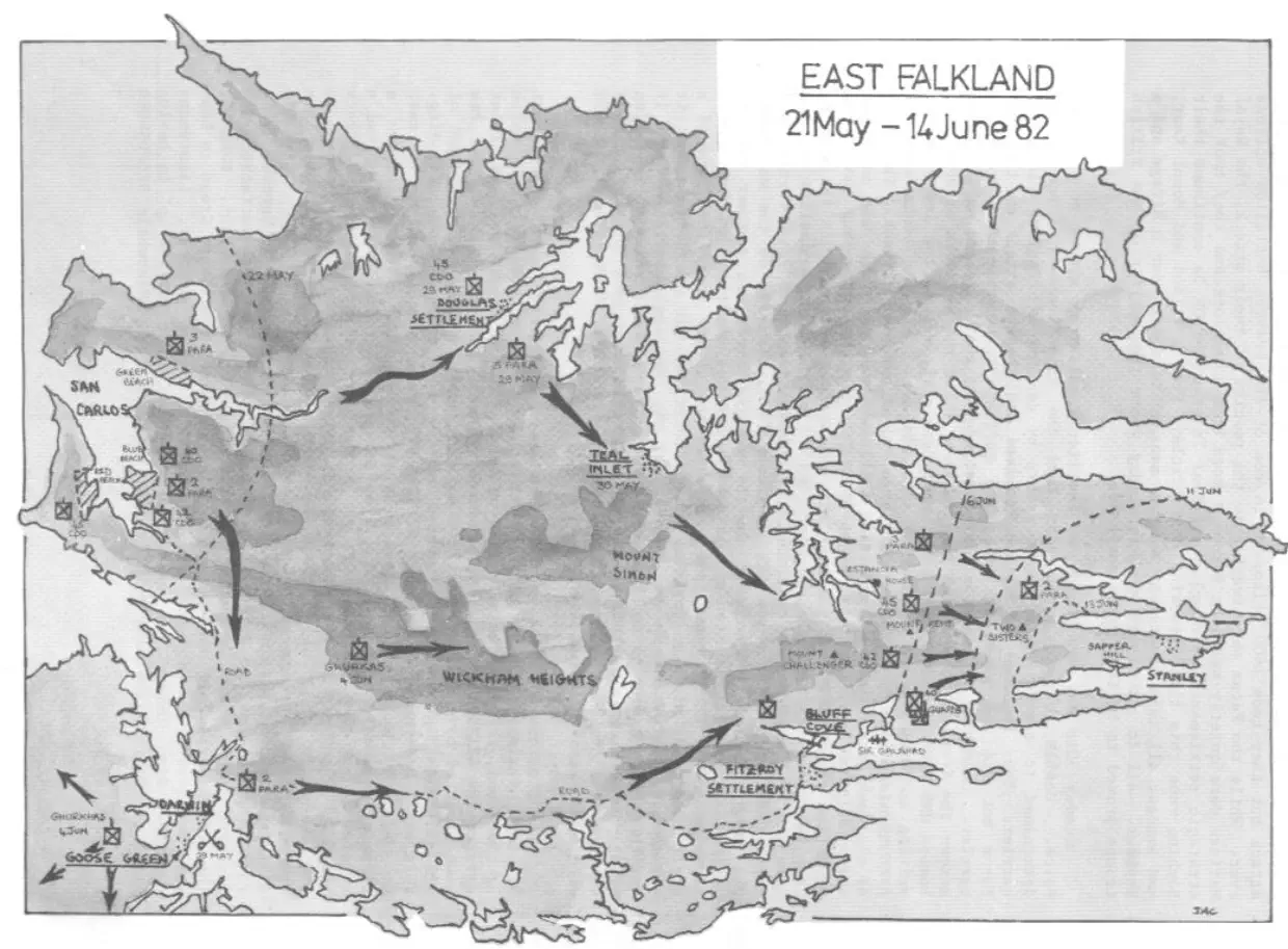 disappearing over the hill and into San Carlos Water itself, where it fired rockets at ARGONAUT, and escaped apparently unscathed