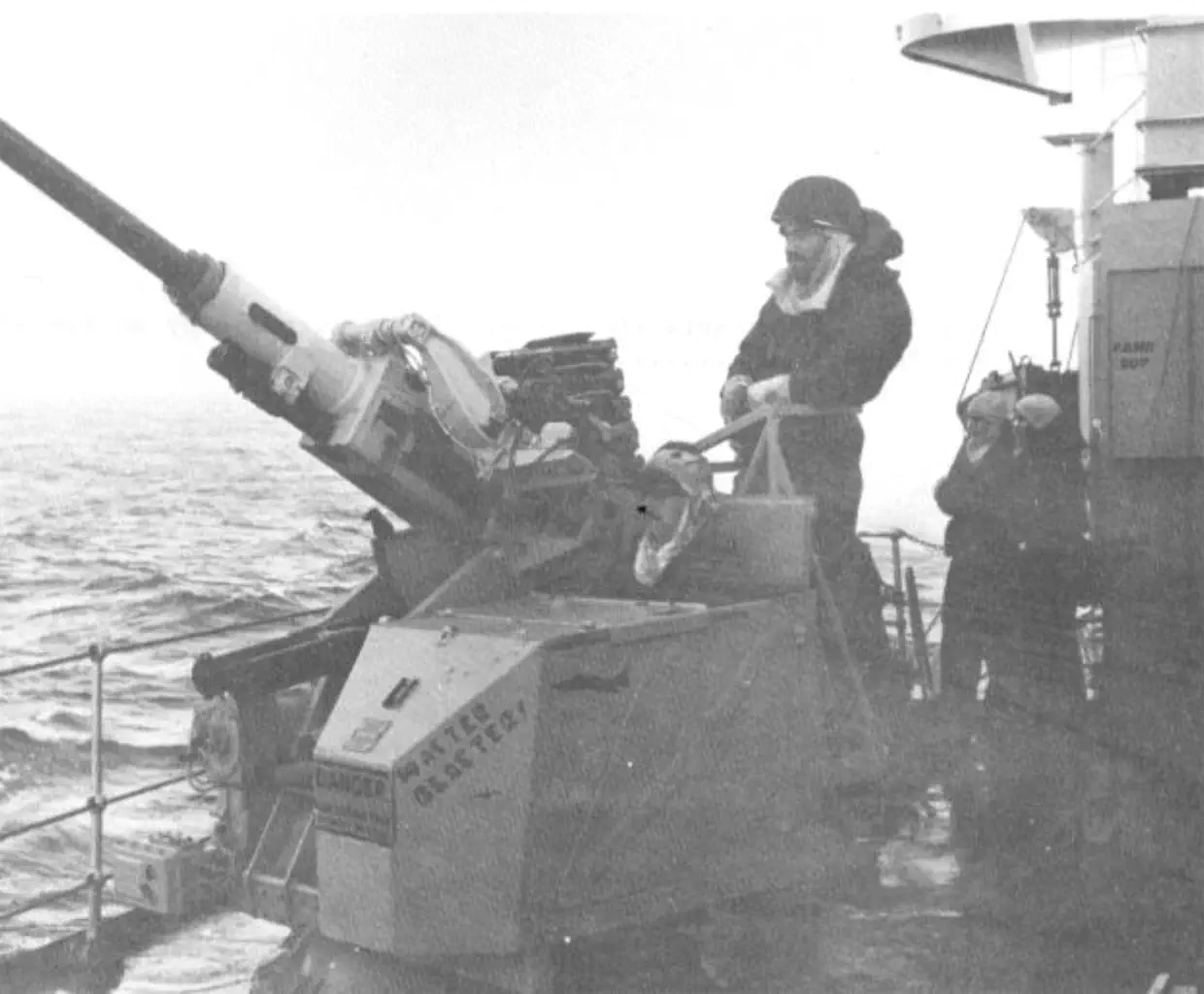 and far between on deck by this time. The Flight Commander was to my left, manning an LMG, whilst I remained closed up on the
