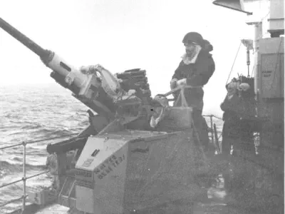directed at BROADSWORD herself. The first of these three came in from the starboard side. We had a GPMG and two LMGs back aft.