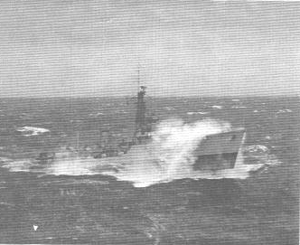 In the late 1950s HMS Scorpion was brought out of reserve along with her three sister ships and refurbished - the original midships torpedoes were replaced by a new mess for the radar specialists as part of a conversion to Radar Picket Destroyers with surface to air radar capable of 200 mile range. See photo of Crossbow who succeeded her in the Med in 1961. These ships were intended to operate 200 miles ahead of the main fleet thereby providing a maximum of 400 mile warning of impending air attack - assuming of course that they survived the first wave etc. In 1960-61 the "new and improved" Scorpion and Broadsword were stationed in Malta as part of the 7th Destroyer Squadron. Her skipper, a newly promoted Commander, was the junior skipper in the fleet and hence she was the canteen boat - a 33kt top speed in her speed trials also helped. During a jackstay transfer exercise with Captain "D's" destroyer while under the "watchful" eye of the Jimmy, Lt. Commander H. W. Drax, ( a relative -son or nephew? of another noted Drax of war time note) she failed to maintain station and proceeded to tear the Jackstay pillars out of the deck causing the loss of the other destroyer's jackstay equipment and lifelines as they were swept over the stern. In the November 1960 after completing her tour of duty in the Mediterranean she underwent a 3-month refit in Gibraltar followed by a "call to action" in the Cape Verde Islands in an international attempt to apprehend a group of hi-jackers (probably the first of the modern day hijacking trend) who had taken over a Portuguese cruise ship off the Caribbean. Along with a Spanish cruiser, three Portuguese destroyers and a British frigate she spent a pleasant two weeks at anchor in St. Vincent waiting for the pirates to reach the mid-point of the Atlantic. Fortunately the pirates surrendered to authorities and she went un-blooded als no medals awarded. This was followed by a brief visit to Alicante, Spain where unfortunately she lost a member of her crew due to an accident while preparing to give a film show to children of the local orphanage. She returned to Gibraltar overnight in an impressive 10 hours - check the distance. In the spring of 1961 she returned to Plymouth, her home port, and after the usual leave for her crew was assigned to the Icelandic Fishery Patrol duties approximately 35 days. She returned to Plymouth in April-May and decommissioned.