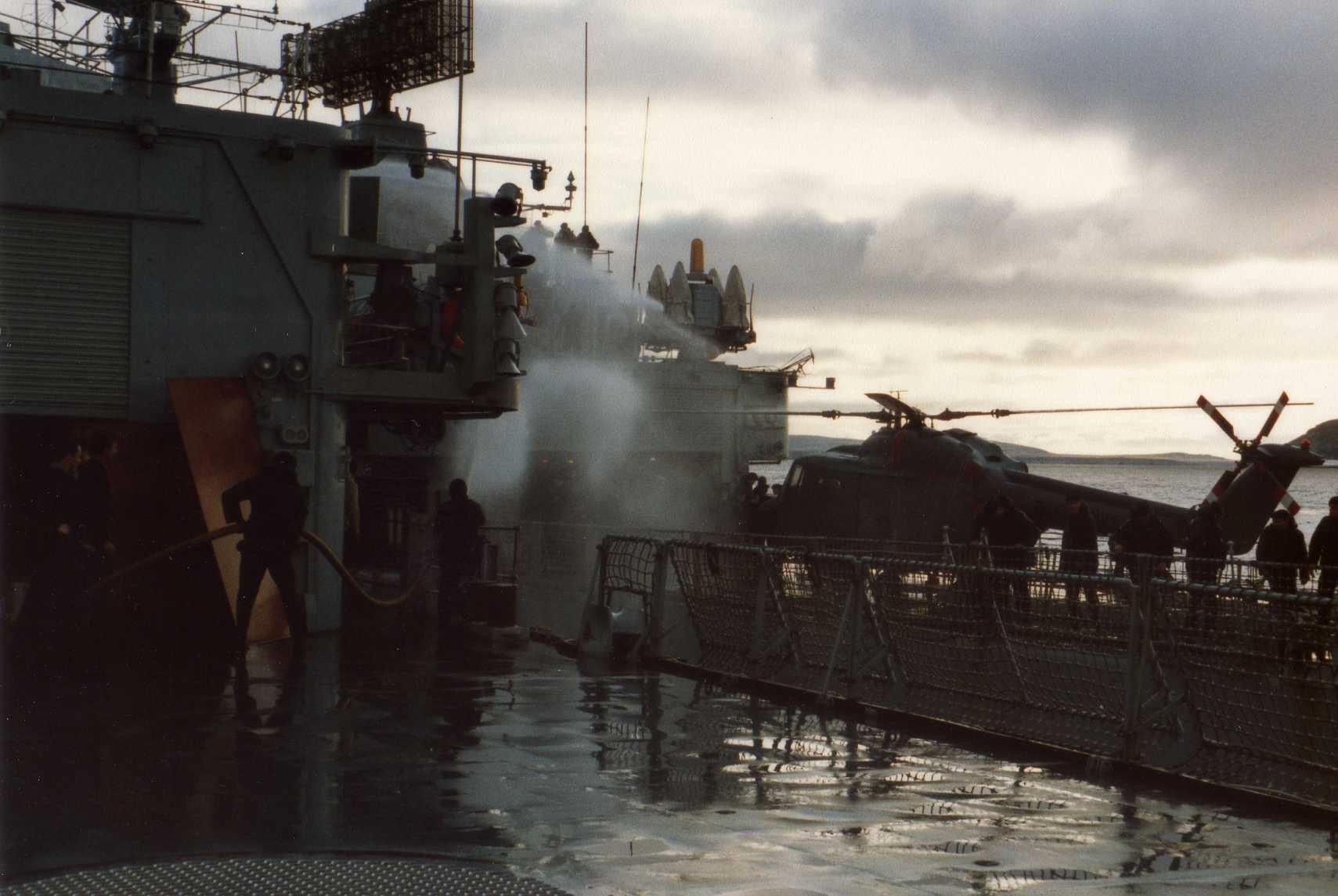 Standby to repel boarders!! Our patrol handover waterfight with HMS Penelope. (Contributed by Paul Brooker)