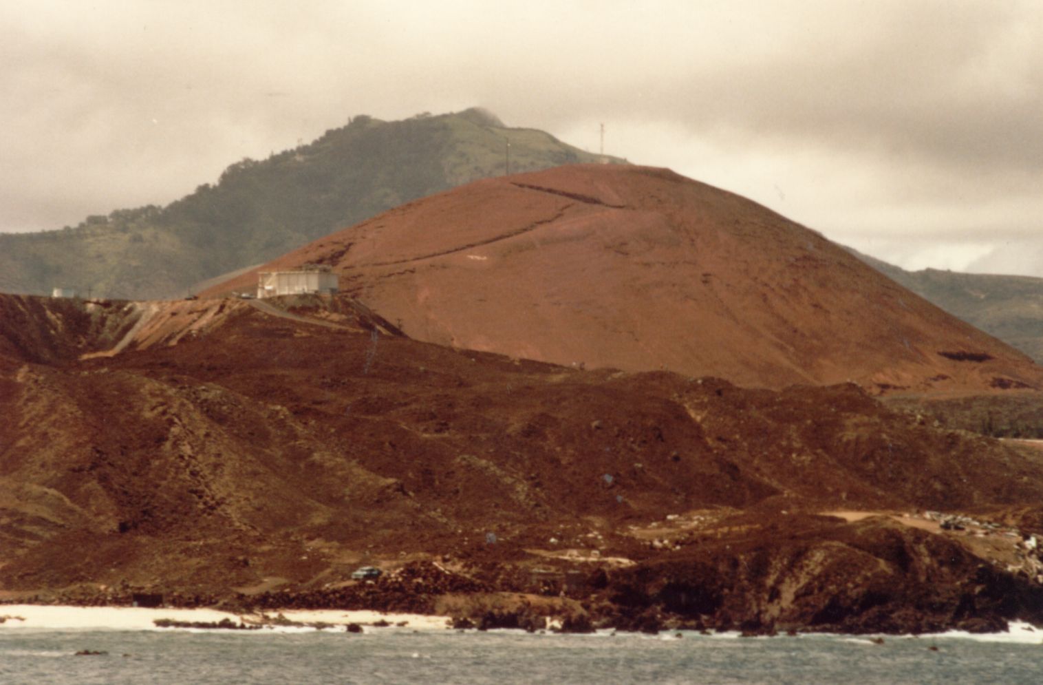 Red Volcanic landscape of Ascension Island April 1982 at one stage the busiest airport in the world. (Contributed by Spider Webster)