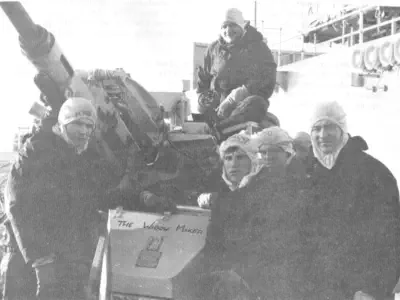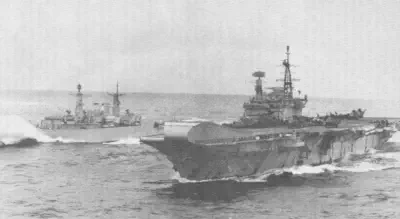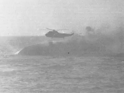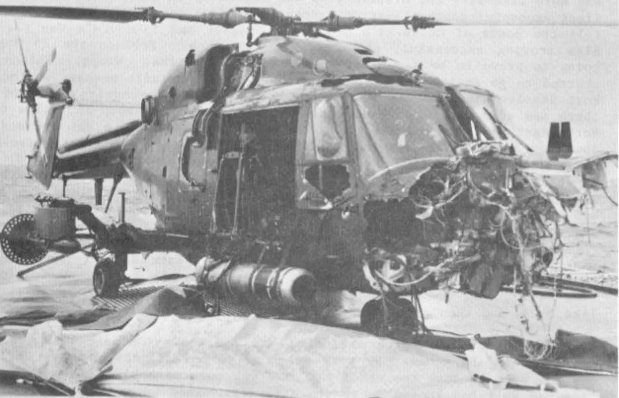 resting his front wheels on her port side, winching men out of liferafts trapped by her Sea Dart launcher. There are a total of