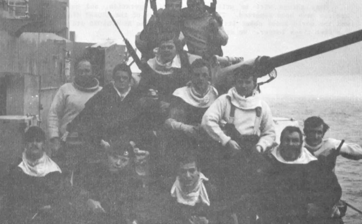 towels and blankets, gave three cheers for 'HMS BROADSWORD' not once but twice. Even as they pulled away into the darkness,