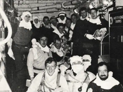 when those men sat, huddled together against the chill winter's night, kitted out in borrowed clothes and shoes, with Pusser's
